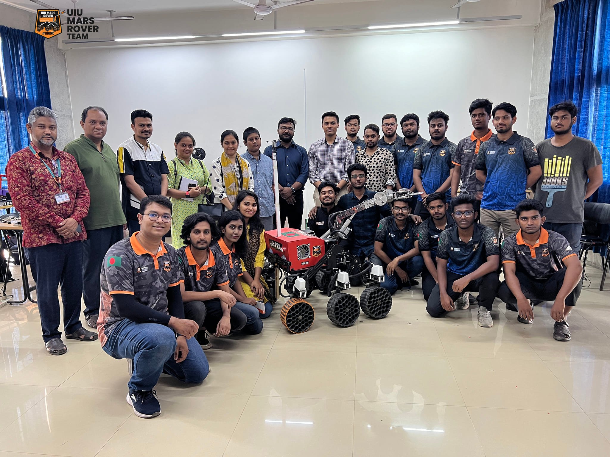 The UIU Mars Rover Team (UMRT) project was launched as a student-driven initiative at United International University (UIU) to compete in the University Rover Challenge (URC) and other international robotics competitions. It began with a group of passionate engineering and robotics enthusiasts working under the guidance of faculty members from UIU's Engineering and CSE departments. Through continuous innovation in mechanical design, AI-based vision, autonomous navigation, and robotic arms, the team rapidly gained recognition. United International University started to fund the UIU Mars Rover Team for further Developement.